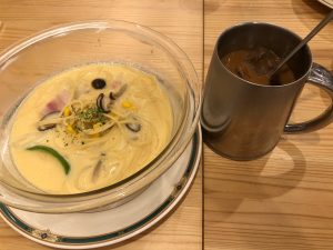 Yちゃんが頼んだアイスコーヒー、なんとビールジョッキのようなサイズに爆笑!(サイズ感伝わるかな~)